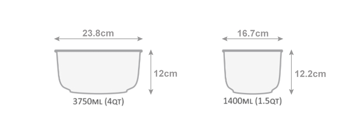 3750ml (4QT) and 1400ml (1.5QT)